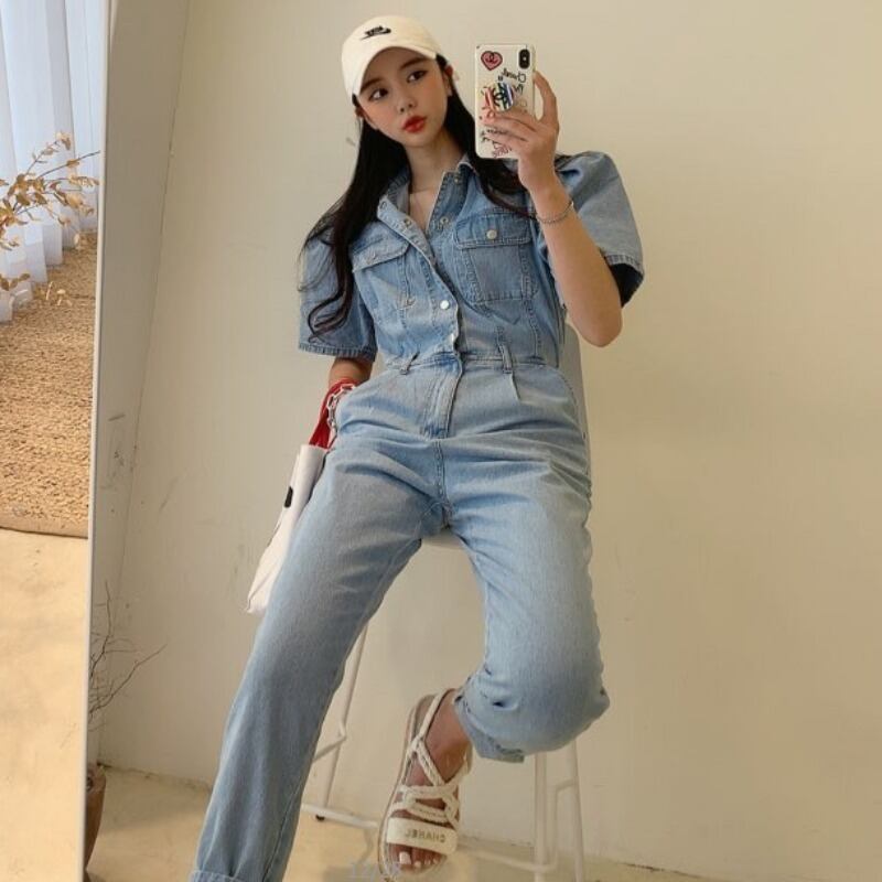 スタンダードハイウェストウェスト薄手半袖スリーブジャンプスーツ オールインワン ショート レトロ ハーフスリーブ ICC_レディース1531276