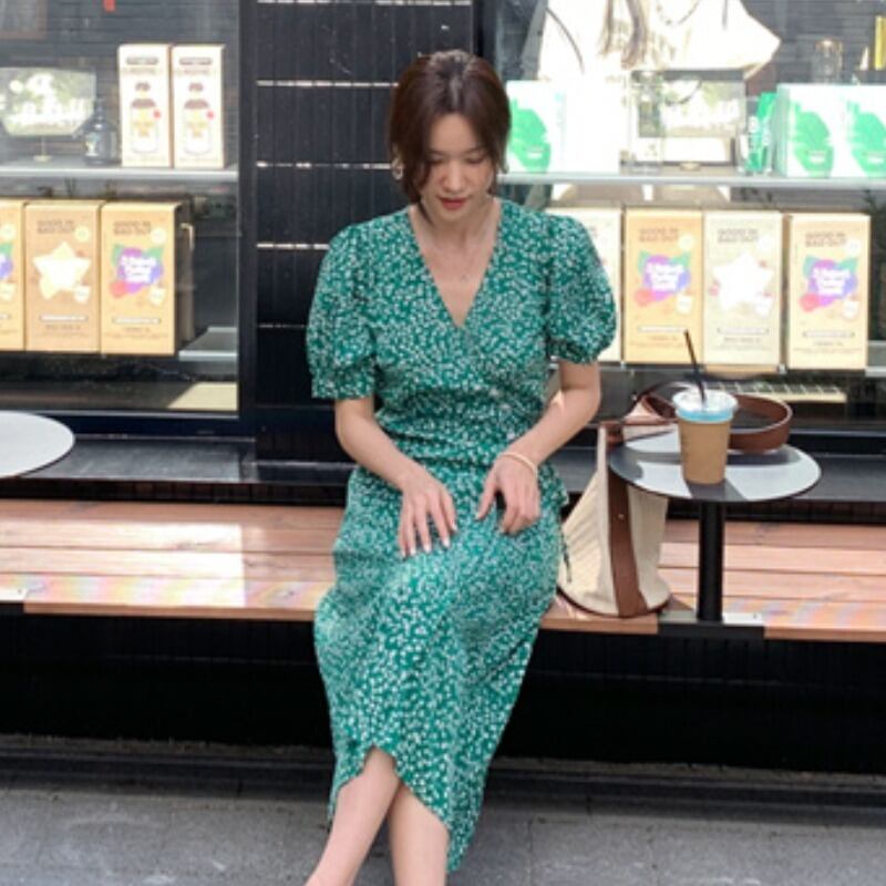 サマースタンダードフローラルVネックスカート レトロ 夏物 花柄 ICC_レディース2221488