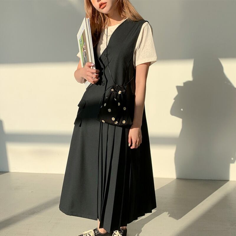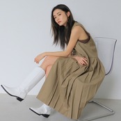 カラーアシンメトリープリーツノースリーブドレス レディース ICC_レディース8475958