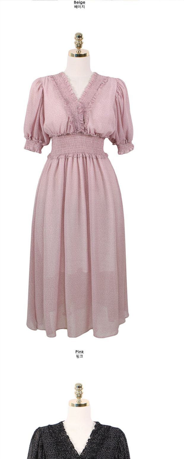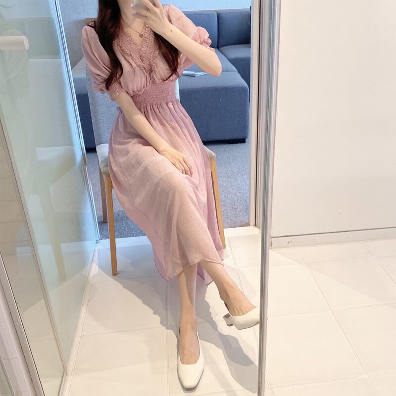 サマースタンダードロングシフォン水玉ウェストドレス レトロ 夏物 左左右右4744312
