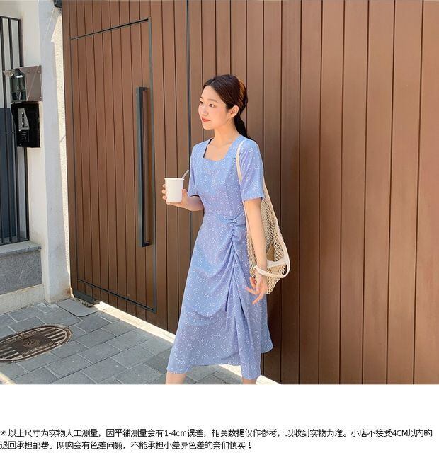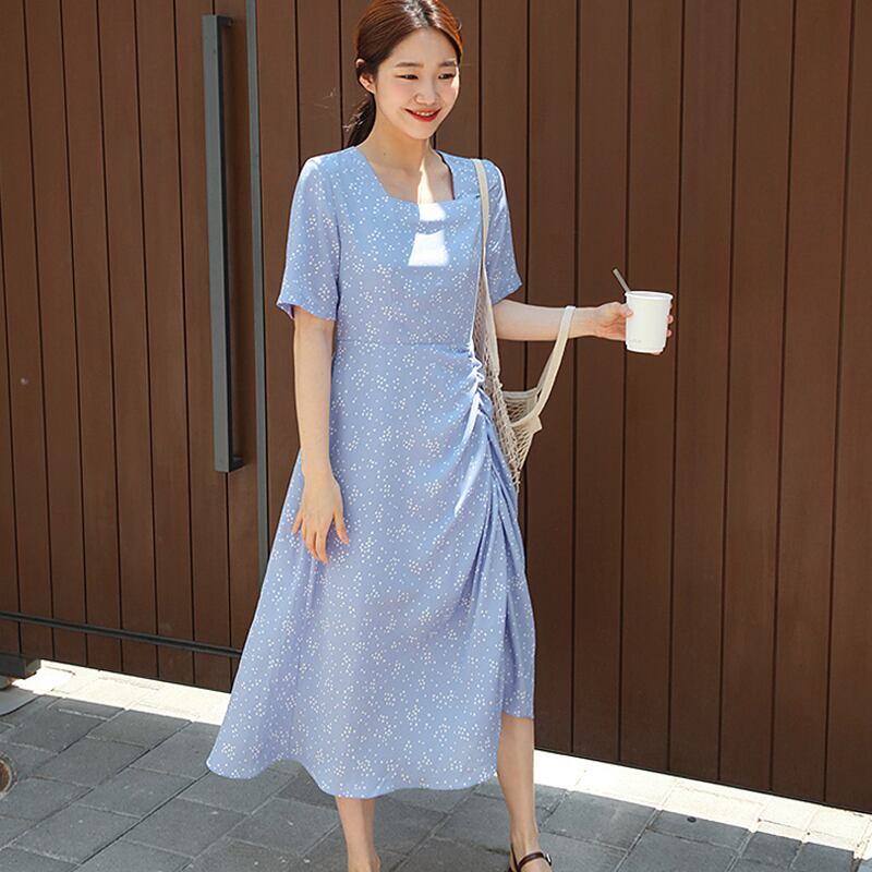サマースタンダードスカート ロングVネックドレス レトロ 夏物 フラワーデザイン 左左右右0406562