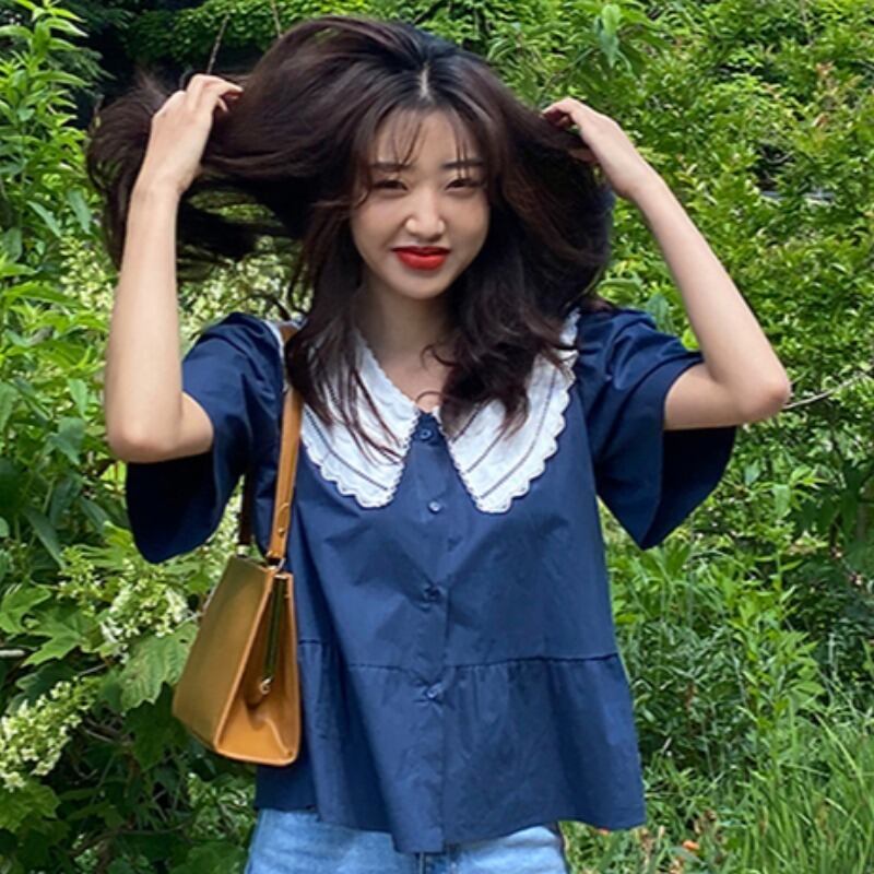 サマーカラートップス スタイルシャツ 大人ガーリー スウィート キュート カジュアル 夏物 ICC_レディース3589317