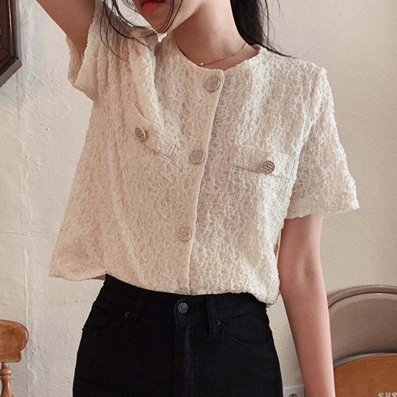 サマーラウンドネックルーズ半袖スリーブシャツ トップス ショート コットン ハーフスリーブ 夏物 Oネック ICC_レディース6623213