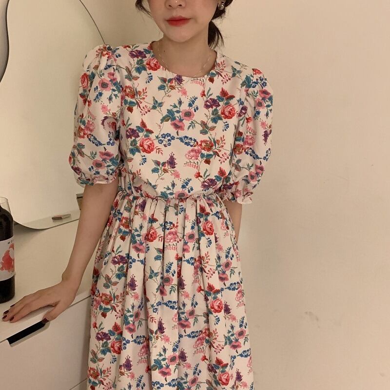 フローラルドレス ヴィンテージFlowerデザイン プリントウェストスリーブ 大人ガーリー スウィート キュート カジュアル 花柄 フラワーデザイン ビンテージ ICC_レディース5694377