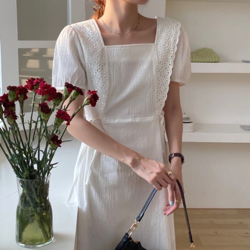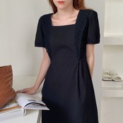 サマーカラーレースドレス レディース エレガント 夏物 スクウェア ステッチ ICC_レディース1827384