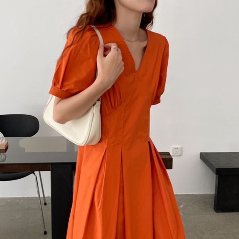 サマーカラーVネックカジュアルルーズドレス レディース 大人ガーリー スウィート キュート 夏物 ICC_レディース1941376