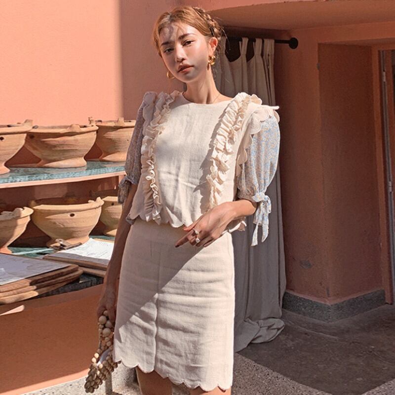 サマーレッドトップス スカート 刺繍 夏物 ICC_レディース4702346