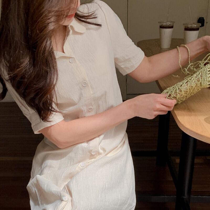 サマースタンダードウェストシャツ ドレス ロングスカート レトロ 夏物 ICC_レディース3280952