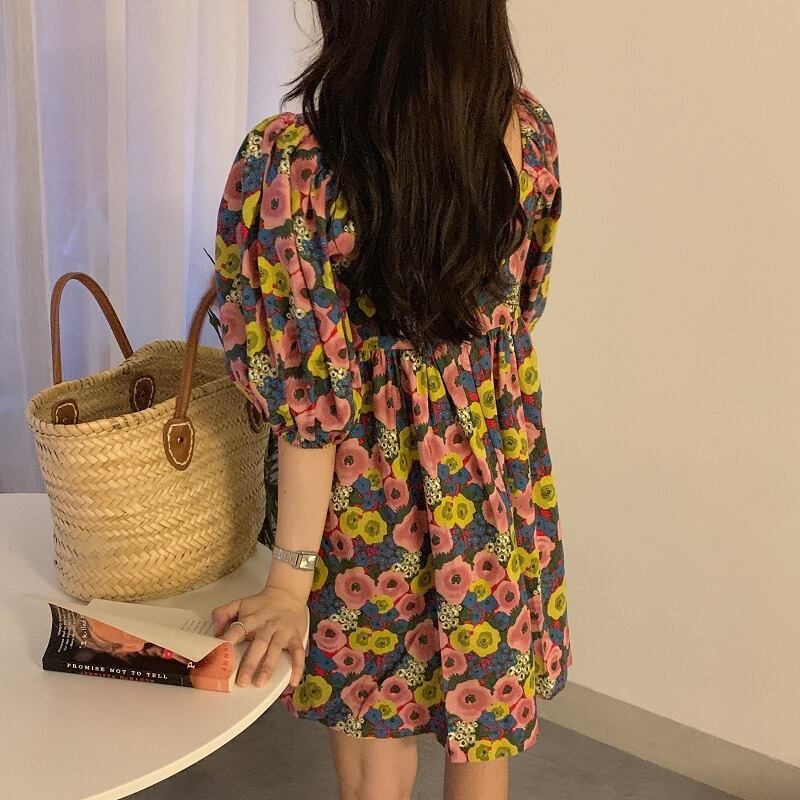 サマーフローラルドレス カラーロングスカート レディース 夏物 花柄 ICC_レディース1419852