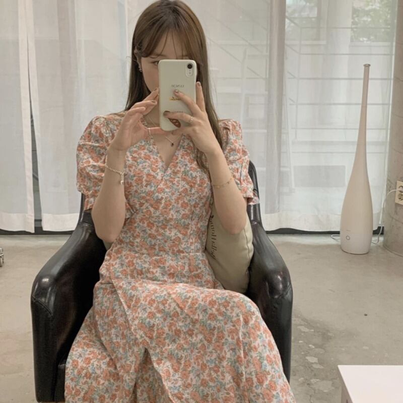 スタイルワンピースVネックシフォンスカート サマーフローラルドレス エレガント 夏物 花柄 ICC_レディース6072694