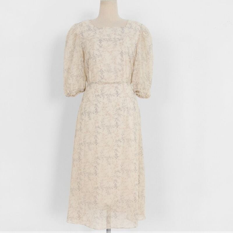 サマースタンダードフローラルウェストシフォンドレス 薄手ロング レトロ 夏物 花柄 ICC_レディース9753493