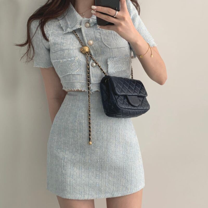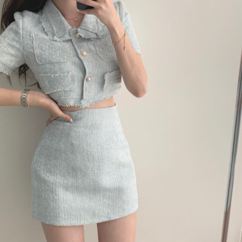 スタンダードブルーショートコート ジャケット Aラインスカート レトロ ICC_レディース4221150