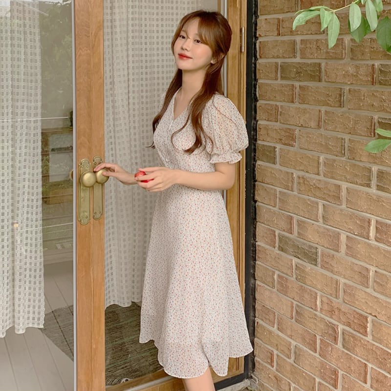 スタンダードスカート ウェストシフォンフローラルドレス レトロ 花柄 フラワーデザイン 左左右右4544948