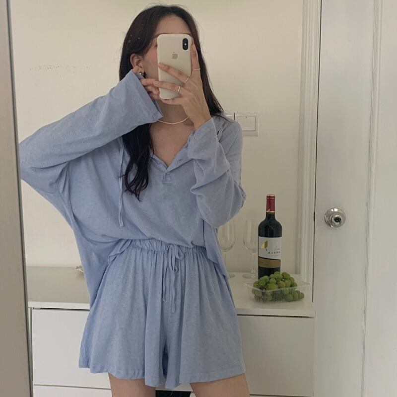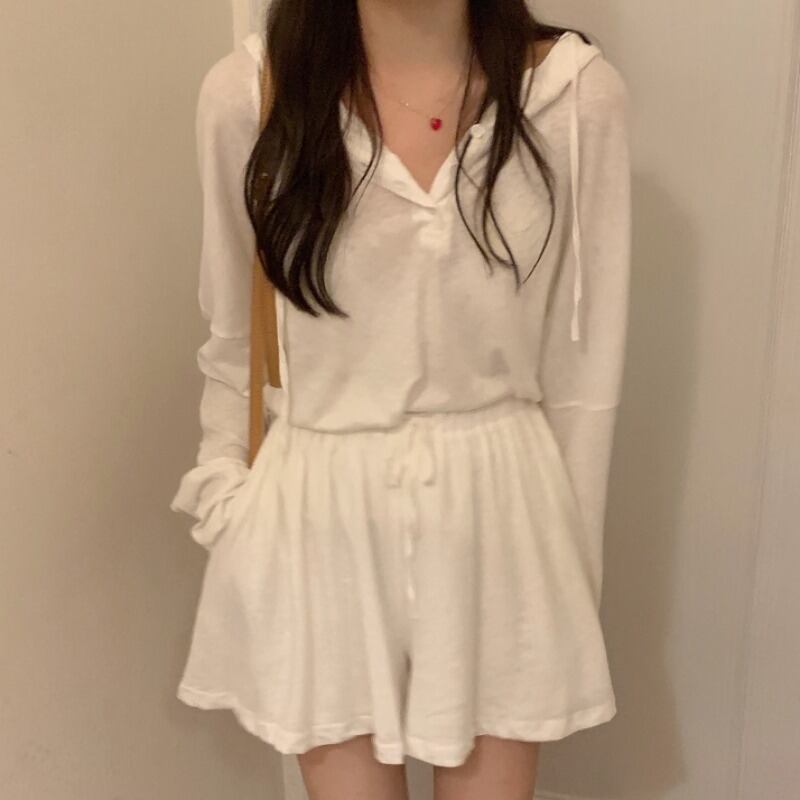 セット 薄手フードTシャツ カジュアルショーツ ロング ブルマー ICC_レディース6264887