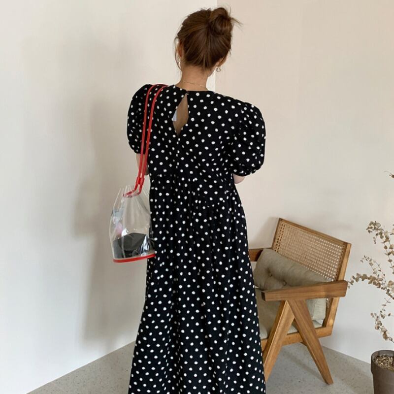 ドレス スタンダード水玉スリーブスカート ロング レトロ 大人ガーリー スウィート キュート カジュアル パニエ ペチコート ICC_レディース3096461