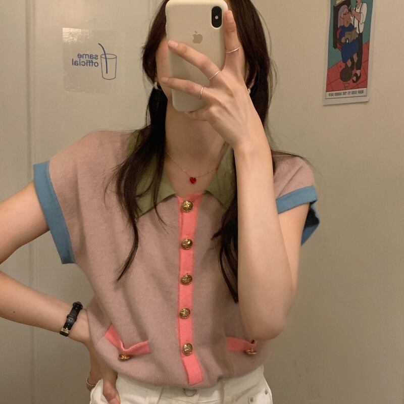 サマーセーター 薄手カラースリーブノースリーブトップス レディース 夏物 シルク ICC_レディース2080537