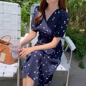シフォンフローラルウェストVネックドレス 花柄 ICC_レディース9974727