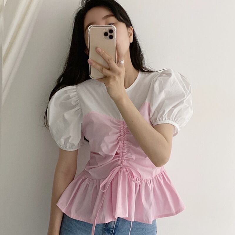 サマーカラーギャザーショートシャツ 夏物 ステッチ ICC_レディース0063346