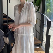 スカート 刺繍ホワイトドレス サマー薄手ロング 夏物 フラワーデザイン ICC_レディース8940758