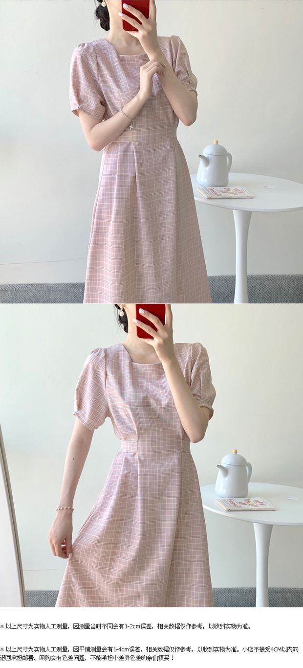 サマースタンダードスカート ウェスト格子柄ドレス レトロ 夏物 フラワーデザイン 左左右右2124640