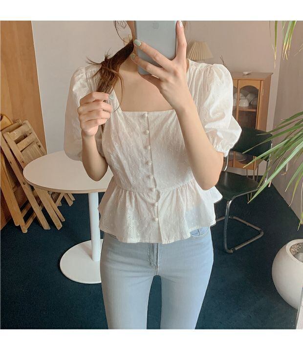 トップス ウェスト半袖スリーブカラーシャツ ショート レッド ハーフスリーブ 刺繍 スクウェア 左左右右8672182