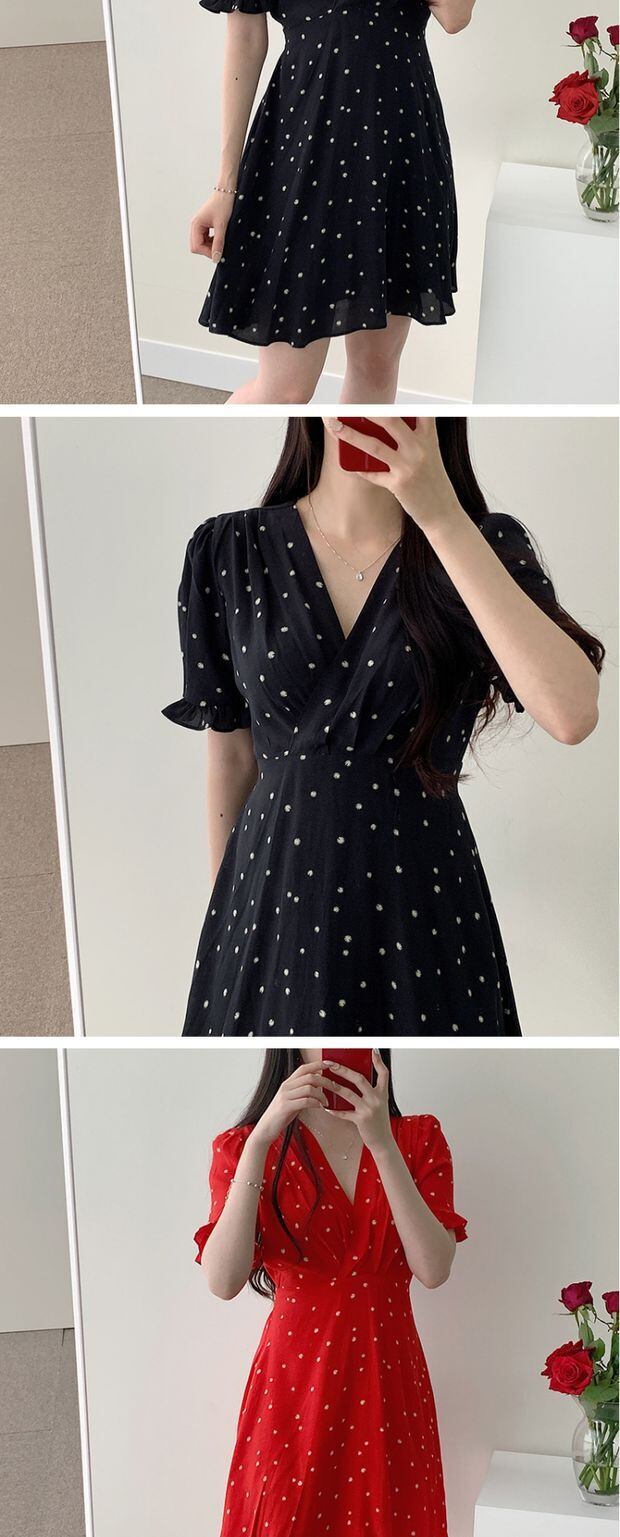サマースタンダードFlowerデザイン スカート ウェストフローラルVネックドレス レトロ 大人ガーリー スウィート キュート カジュアル 夏物 花柄 フラワーデザイン 左左右右9596808