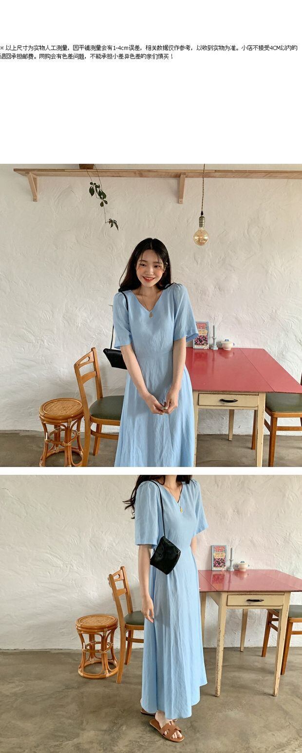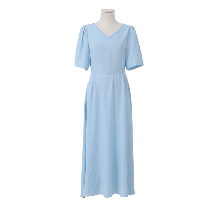 サマースカート ソリッド カラーロングバックスタンダードドレス レトロ 大人ガーリー スウィート キュート カジュアル 夏物 ソリッドカラー 左左右右6968977