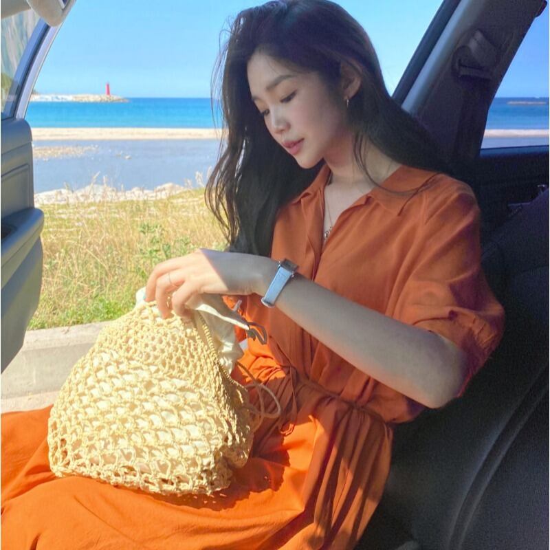 ホワイトオレンジロングシャツ スカート サマールーズレースウェストドレス 夏物 ICC_レディース5770436