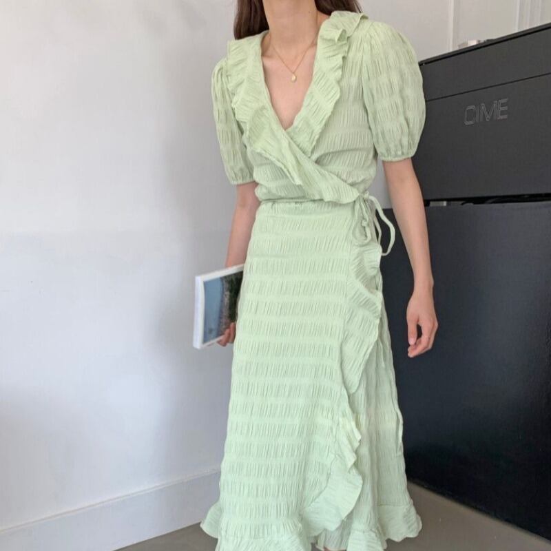 スカート サマー薄手Vネックレースドレス レディース 大人ガーリー スウィート キュート カジュアル 夏物 ICC_レディース6218644