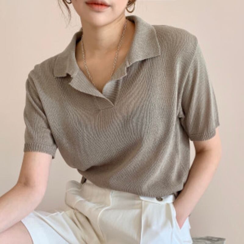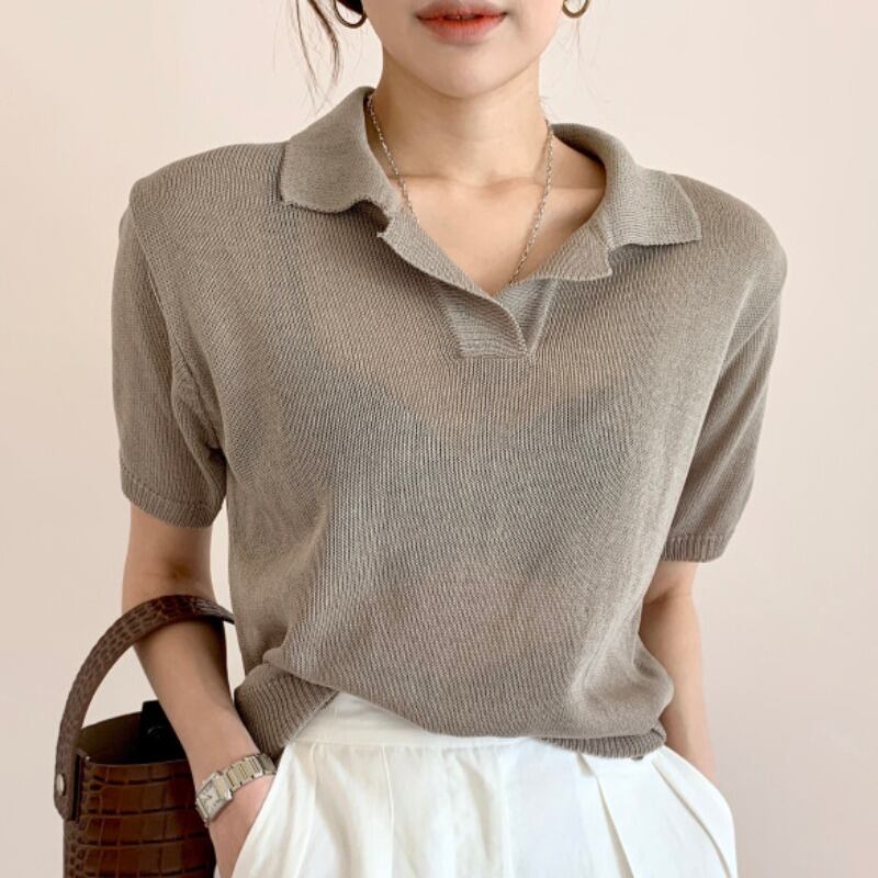 サマースタイルミニマリストシャツ ソリッド カラーカジュアル薄手セーター 夏物 シルク ソリッドカラー ICC_レディース2493834