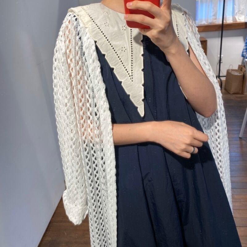 色:ブルーベストドレス,白いベストドレス,白編み,ブラックニット