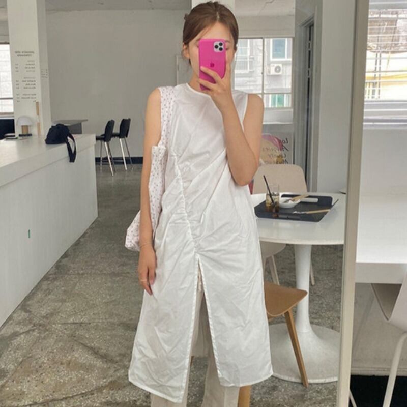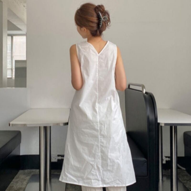 サマーVネックノースリーブロングシャツ ドレス レディース 夏物 ICC_レディース0463111