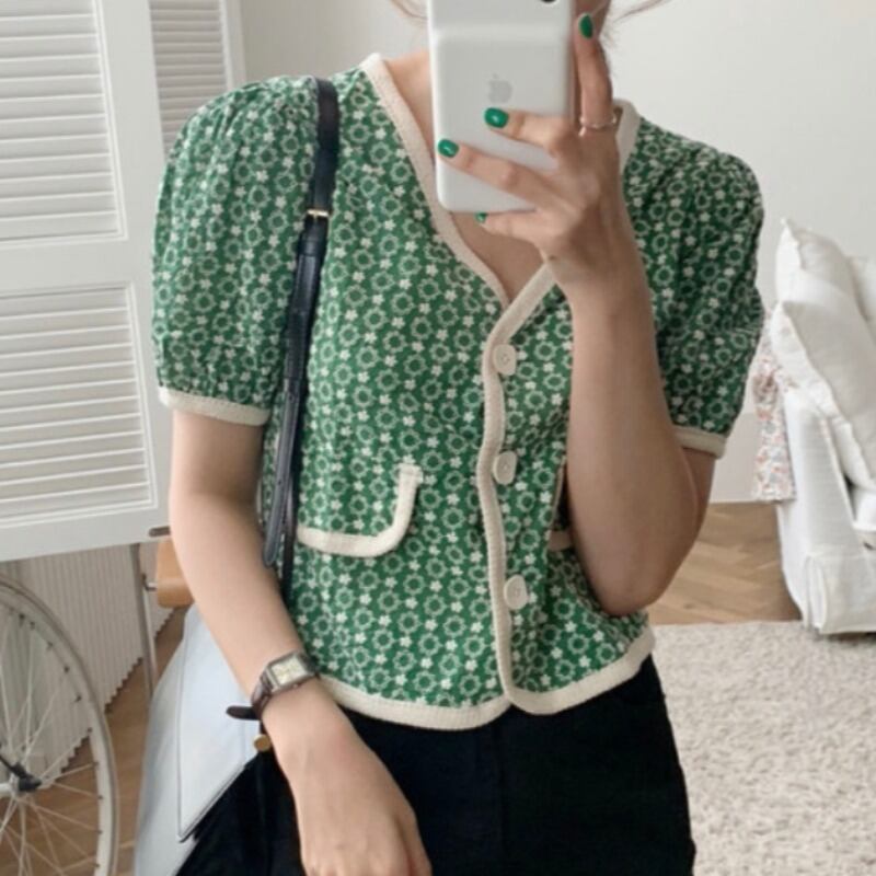 Flowerデザイン シャツ サマーVネックスリムショートコート 夏物 フラワーデザイン ICC_レディース0618663
