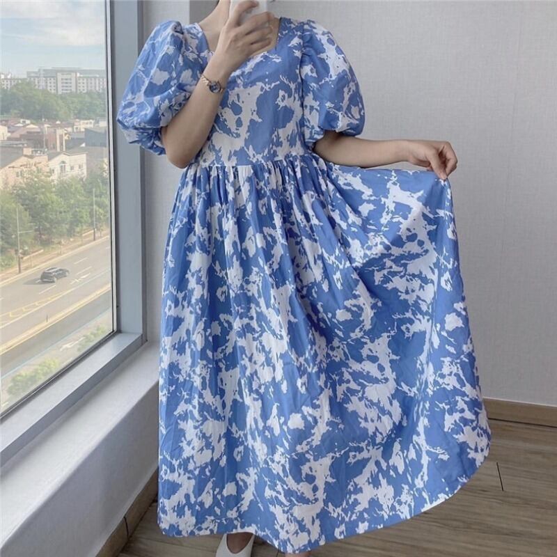 スカート サマースタイルスタンダードプリントロング薄手ドレス レディース レトロ 夏物 ICC_レディース7393087