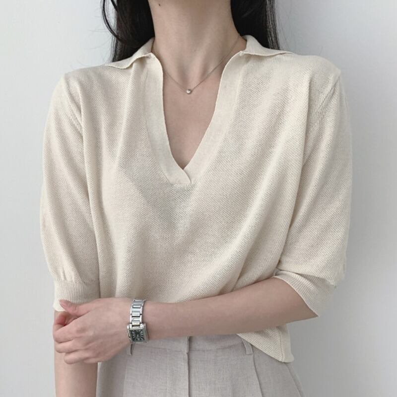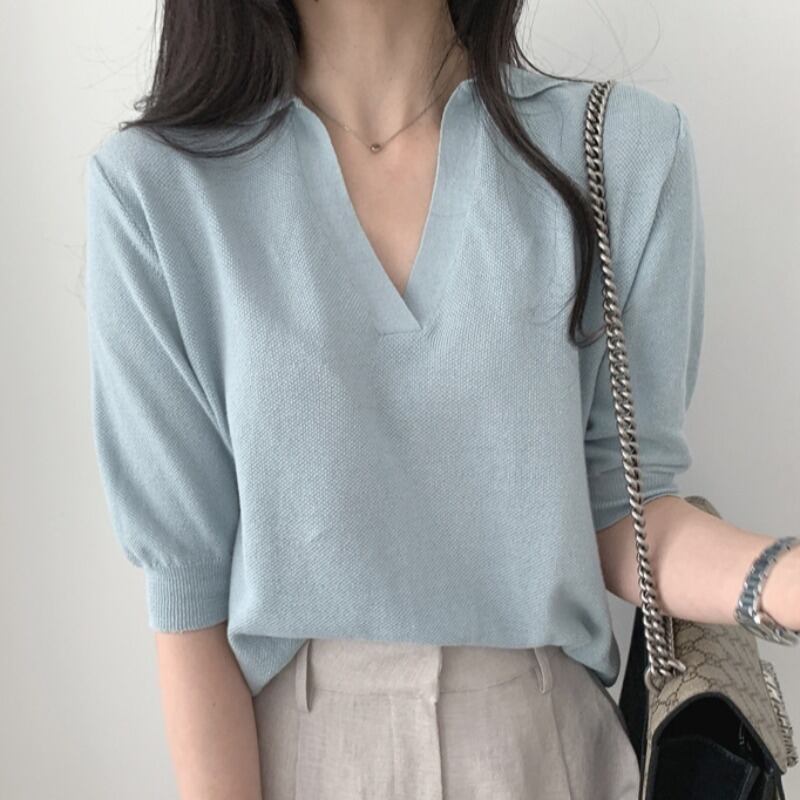 サマースタイル薄手カラープルオーバー セーター トップス 夏物 シルク ICC_レディース5631690