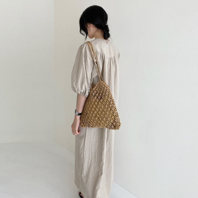 サマースタンダードルーズVネックドレス ロングスカート レトロ 夏物 ICC_レディース9260037