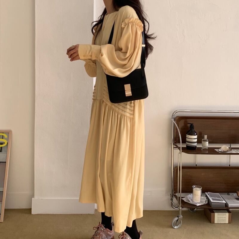 スカート サマースタイルカラーハイウェストウェストプリーツスリーブドレス レディース ランタンスリーブ 夏物 スクウェア ICC_レディース1662352