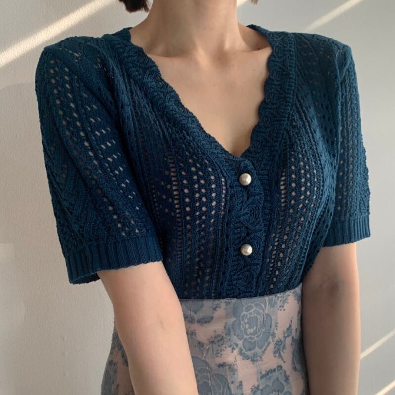 スタイル薄手セーター サマーVネックカーディガンシャツ トップス 夏物 シルク ICC_レディース5775472