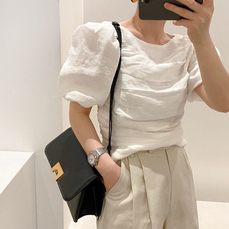 プリーツスリーブシャツ ハイウェストウェストカジュアルパンツ ショーツ ブルマー ICC_レディース6665200