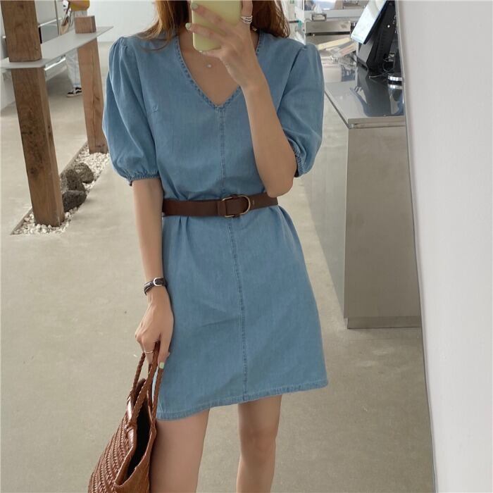 スカート サマーVネックスリーブルーズドレス 夏物 フラワーデザイン ICC_レディース9531204