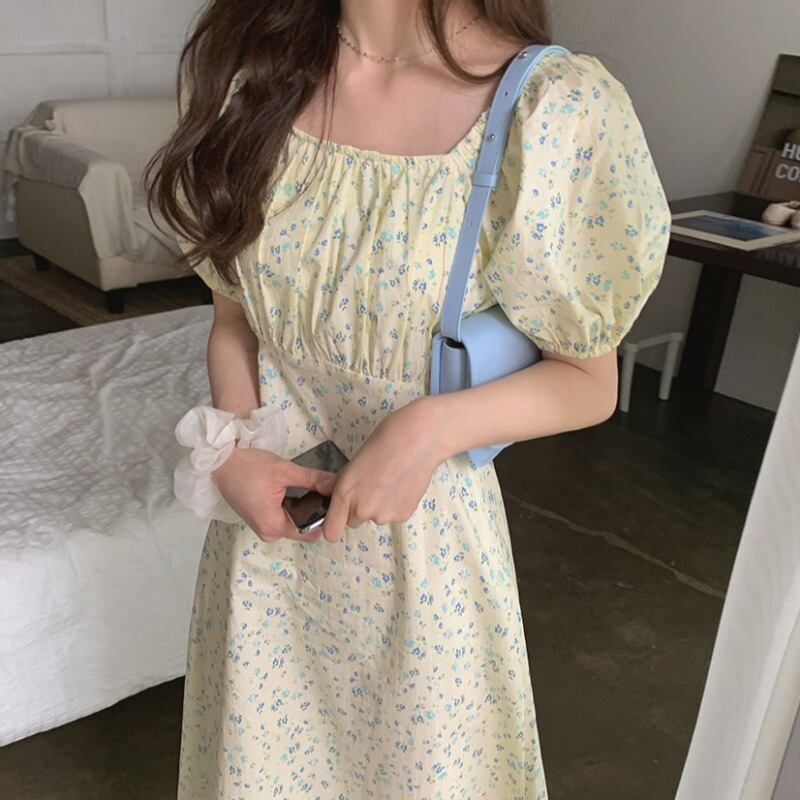 スカート サマーカラースリーブフローラルドレス レディース 大人ガーリー スウィート キュート カジュアル 夏物 花柄 スクウェア ICC_レディース1814937