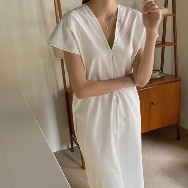 スカート サマー薄手Vネックロングドレス コットン 夏物 ICC_レディース1593508