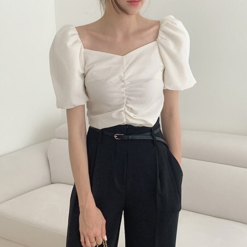 サマーVネックスリーブシャツ ハイウェストウェストスカート レッド 夏物 ICC_レディース5553746
