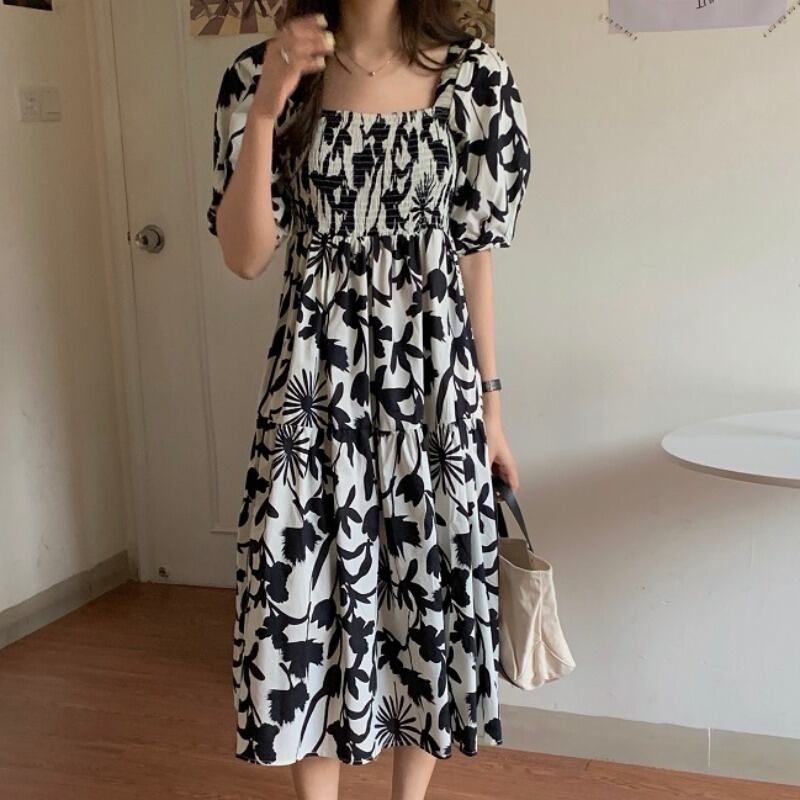 スカート サマースタンダードカラースリーブドレス レトロ 夏物 スクウェア ICC_レディース4737382