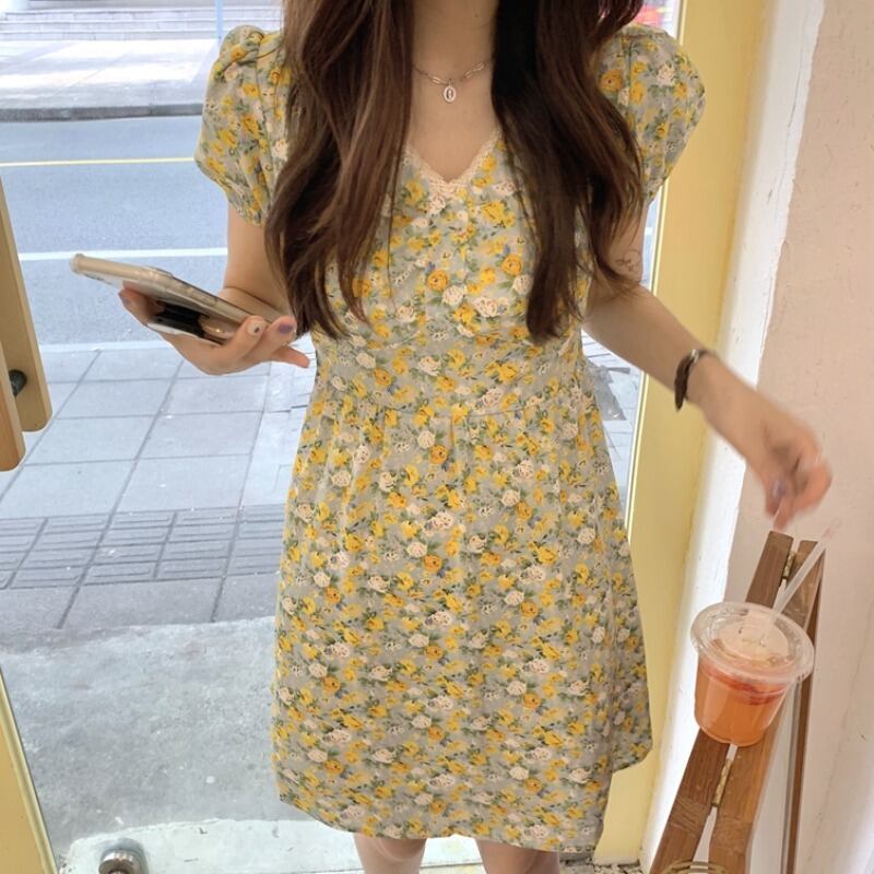 スカート サマーフローラルレースVネック薄手Aラインドレス 夏物 花柄 ステッチ ICC_レディース9284336
