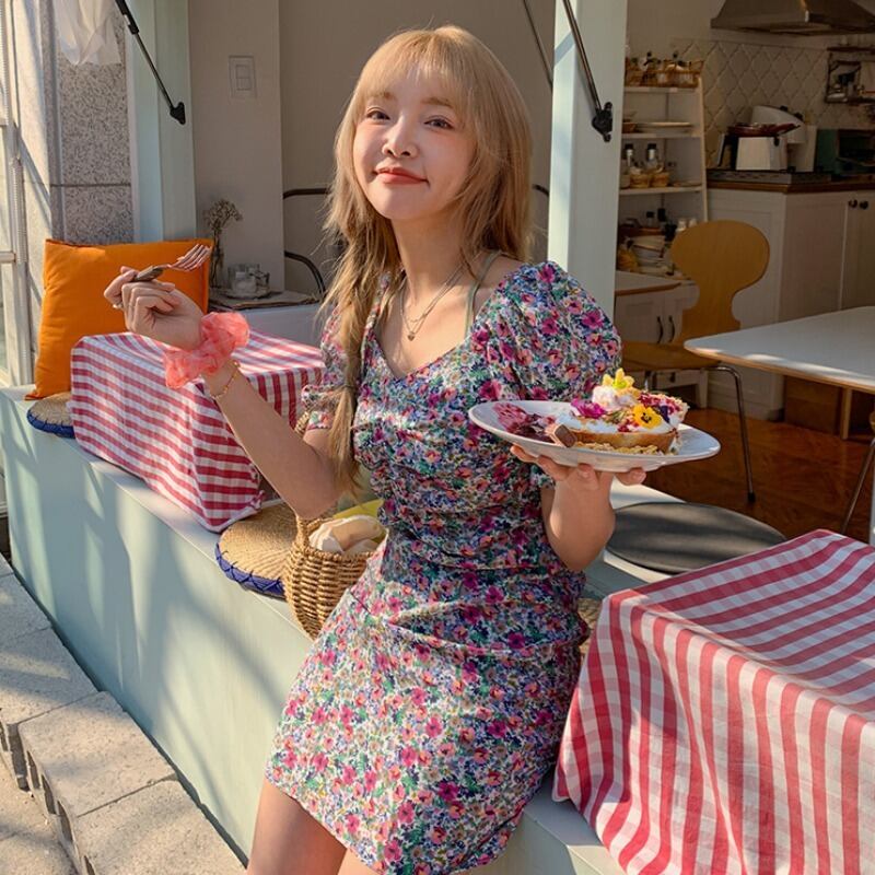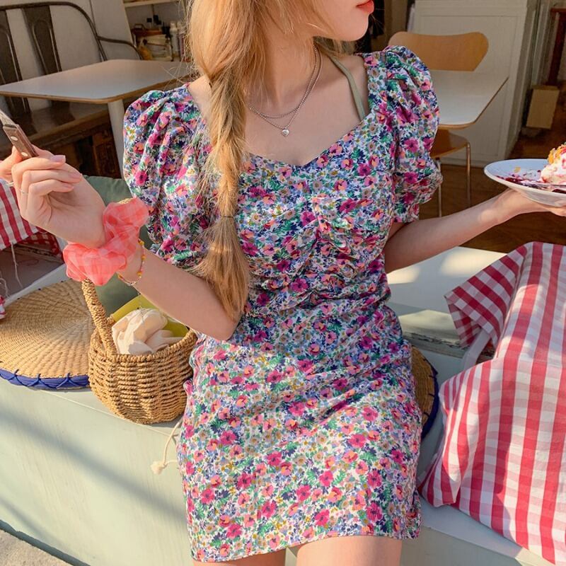 サマードレス スタイルスリーブウェストスリム薄手フローラル 夏物 花柄 ICC_レディース1810375