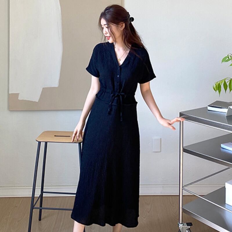 スカート サマーレースロング薄手スタンダードVネックドレス レトロ 夏物 ICC_レディース6975387