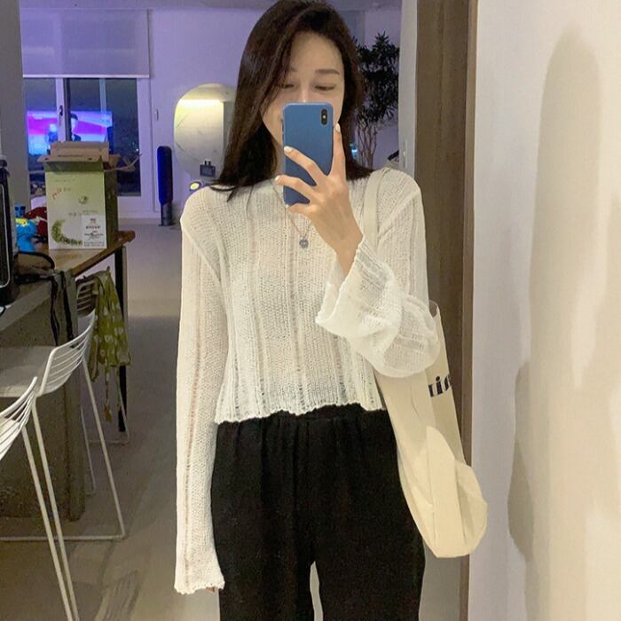 サマーショートセーター ルーズシャツ ブラウス ロング 夏物 ICC_レディース3560805
