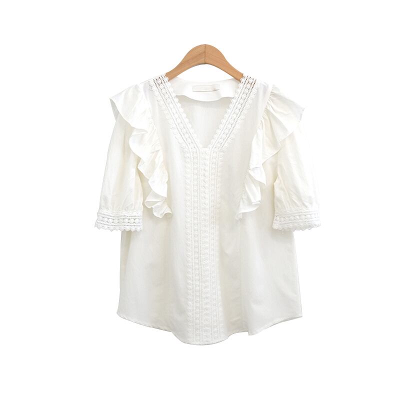 トップス シャツ レース半袖スリーブVネック ショート ハーフスリーブ 大人ガーリー スウィート キュート カジュアル 左左右右4434089