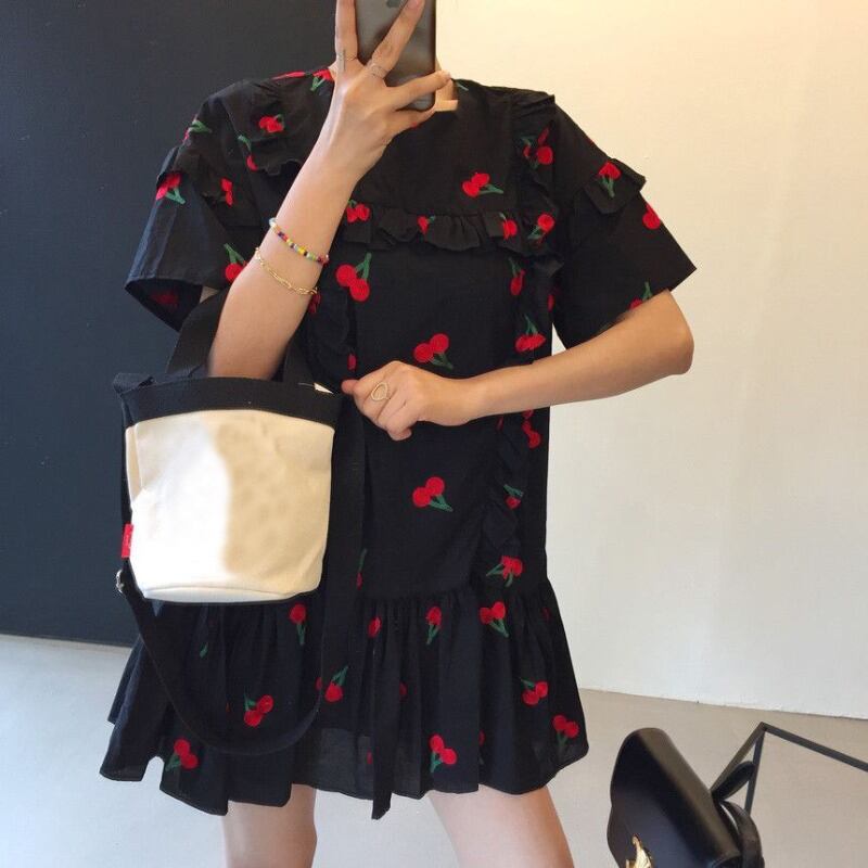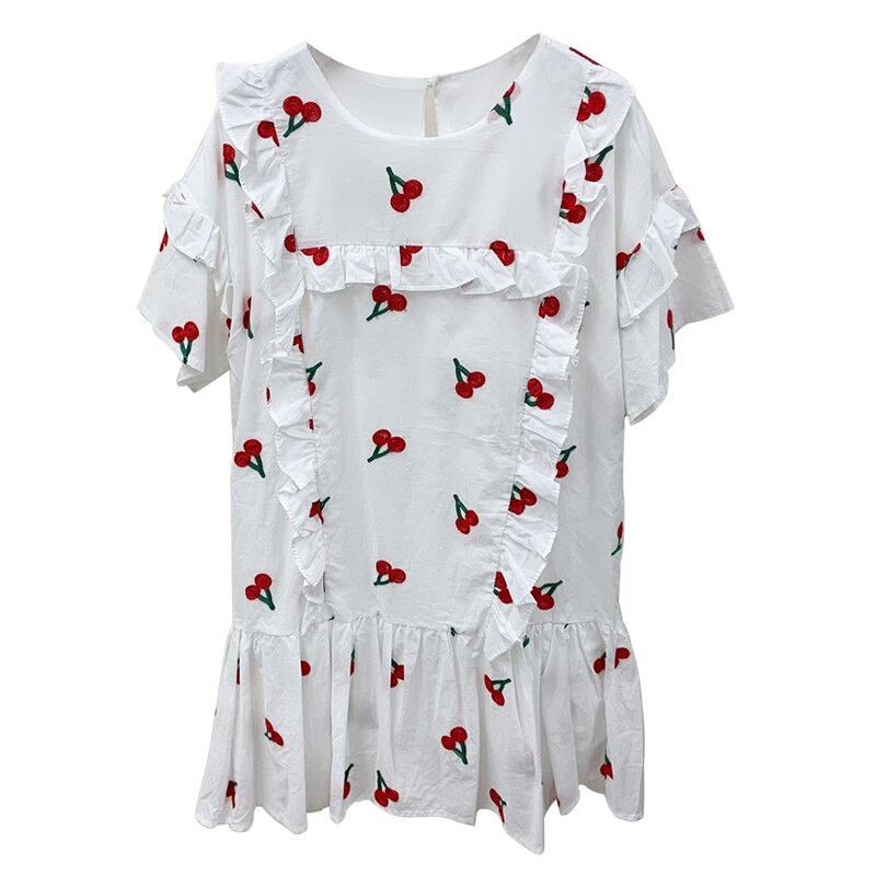 サマー刺繍ラウンドネックルーズドレス スカート 大人ガーリー スウィート キュート カジュアル 夏物 Oネック ICC_レディース7708451